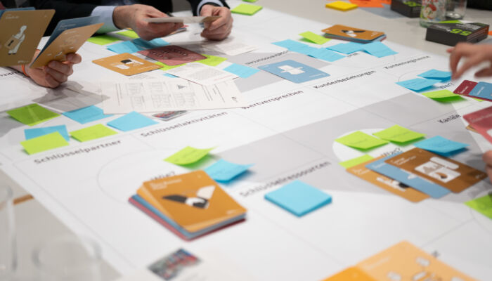 Der Nachmittag des Open Innovation Kongresses war durch mehrere parallel stattfindende Workshops geprägt. In dem sehr gut besuchten Workshop „Open Innovation für Smart Service“ wurden konkrete Konzepte rund um digitale Dienstleistungen erarbeitet und diskutiert. Die Teilnehmenden konnten hier aus einem breiten Themenspektrum von Geschäftsmodellen über neue Dienstleistungsangebote bis hin zum begleitenden Change Management wählen. Großes Lob gab es für den interaktiven Charakter des Workshops und für die Einbeziehung „weicher“ Faktoren in die ansonsten eher technologisch geprägte Veranstaltung.