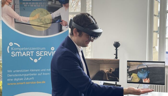 Dr. Nicole Hoffmeister-Kraut, Ministerin für Wirtschaft, Arbeit und Tourismus, eröffnete den Kongress. Sie betonte: „Der Schlüssel liegt in Kooperationen – sich gegenseitig unterstützen, sich vernetzen, Wissen untereinander auszutauschen – kann entscheidend dazu beitragen, Innovationsprozesse zu beschleunigen und Innovationen früher zum Erfolg zu bringen.“ Es folgten eine Reihe weiterer spannender Vorträge und Podiumsdiskussionen. Parallel dazu fand eine Ausstellung statt, an der sich auch das Kompetenzzentrum Smart Services beteiligte. Dabei wurden von virtueller Realität über Künstliche Intelligenz bis hin zum Einsatz von Hologrammen an der Kundenschnittstelle viele neue Technologien live präsentiert. Besucherinnen und Besucher hatten somit die Möglichkeit, die Technologien selbst auszuprobieren, sich eine eigene Meinung zu bilden und das Potenzial der Technologien für den eigenen Betrieb zu diskutieren. Mit einigen interessierten Unternehmen wurden bereits vor Ort konkrete weitere Schritte in Form von „Impuls-Projekten“ vereinbart – auf diese Weise etwa unterstützt das Kompetenzzentrum Smart Services kleine und mittlere Betriebe direkt bei der Umsetzung neuer Technologien in marktfähige Anwendungen.